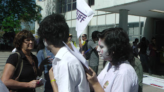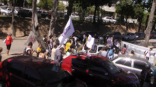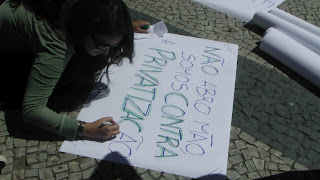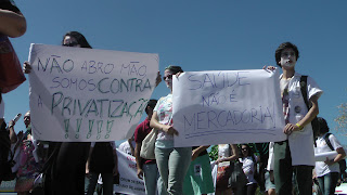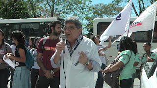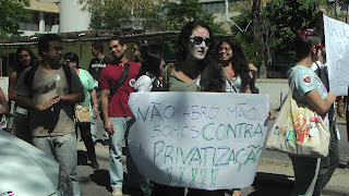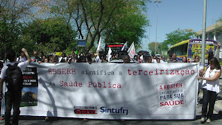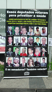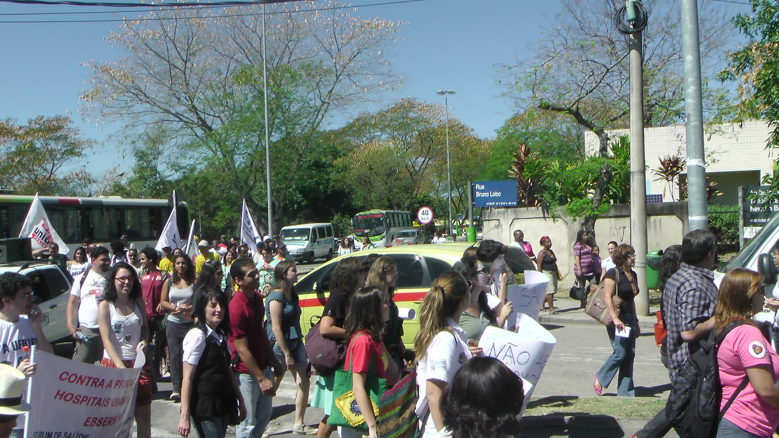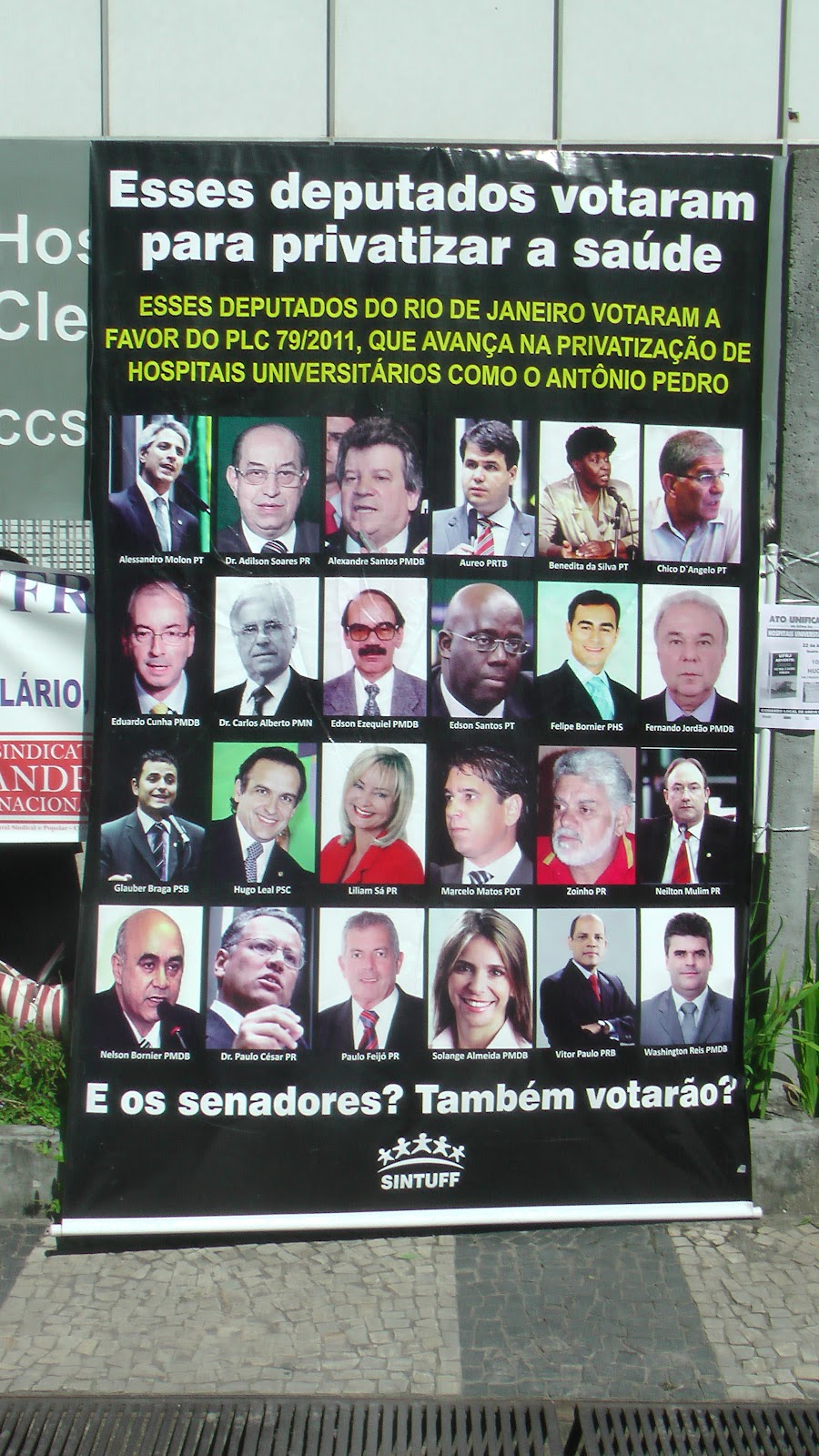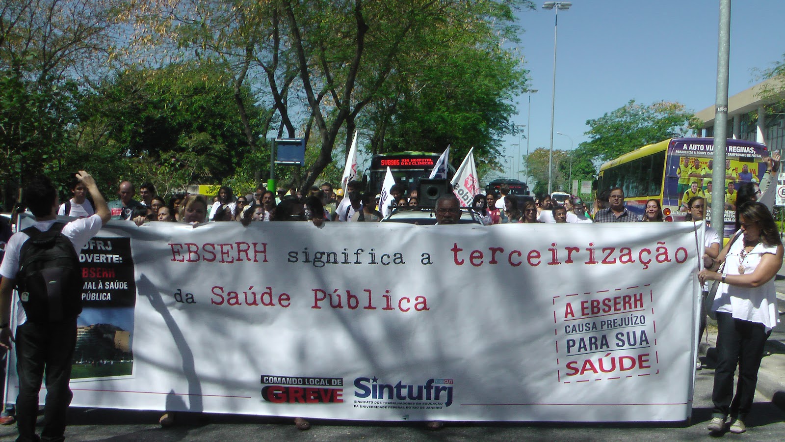Ontem, dia 22 de agosto, foi realizado um ato público em frente ao Hospital Universitário Clementino Fraga Filho (HUCFF), na Ilha do Fundão. A manifestação tinha como objetivo alertar à comunidade acadêmica e a todos sobre a atitude antidemocrática da Reitoria da UFRJ em mostrar-se em posição de abrir negociações com a Empresa Brasileira de Serviços Hospitalares (EBSERH) sem uma prévia consulta às diversas unidades da universidade.