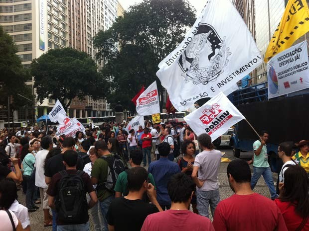 Professores, alunos e técnicos protestaram no Centro do Rio, nesta quinta (28) (Foto: Renata Soares/G1)