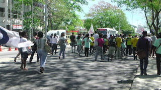 Ontem, dia 22 de agosto, foi realizado um ato público em frente ao Hospital Universitário Clementino Fraga Filho (HUCFF), na Ilha do Fundão. A manifestação tinha como objetivo alertar à comunidade acadêmica e a todos sobre a atitude antidemocrática da Reitoria da UFRJ em mostrar-se em posição de abrir negociações com a Empresa Brasileira de Serviços Hospitalares (EBSERH) sem uma prévia consulta às diversas unidades da universidade.